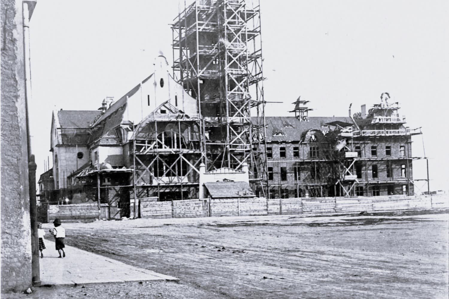 Architektonický návrh vypracoval Antonín Möller z Varnsdorfu ve stylu německé moderny a doznívající secese. Provádějícím stavitelem byl Eduard Sochor. Stavbu oficiálně zahájilo posvěcení základního kamene 15. 8. 1912. Během zimy se práce zastavily. Už 15. 5. 1913 byl stavěn krov kláštera a 25. 7. 1913 vztyčen kříž na věži kostela.